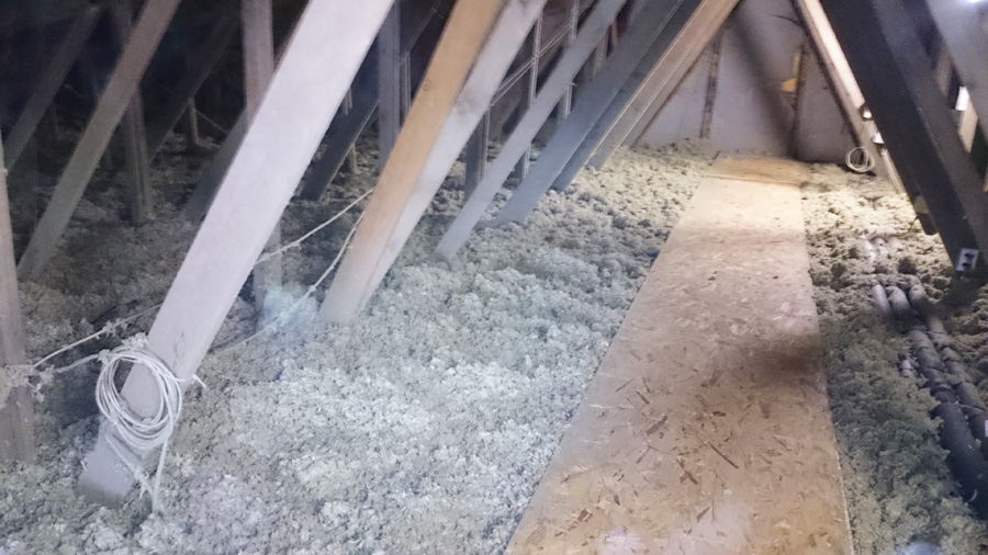 Die Decken der letzten Wohngeschosse sind häufig Holzbalkendecken mit oder ohne Schlackenschüttung, mit alter Dämmung oder aus Stahlbeton. Sind diese nicht gedämmt verliert man viel Energie in den kalten Bodenraum. Auch Lücken und Spalten in der alten Dämmung stellen Schwachstellen dar. Es gibt nun Möglichkeiten auch hier mit einer Einblasdämmung eine Verbesserung zu erreichen. In Kriechböden können wir die Dämmung lückenlos auf oder in Hohlräume einblasen.