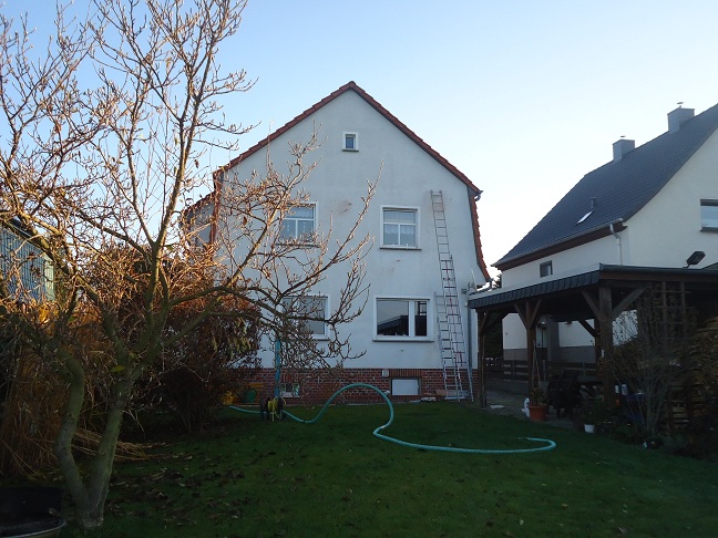 Die Luftschicht der Außenwände dieses Hauses hatte eine Stärke von 7-8cm. Durch das Verfüllen mit unserer Kerndämmung, konnte der U-Wert von ca. 1,5 W/(m²K) auf ca. 0,39 W/(m²K) verbessert werden.