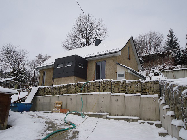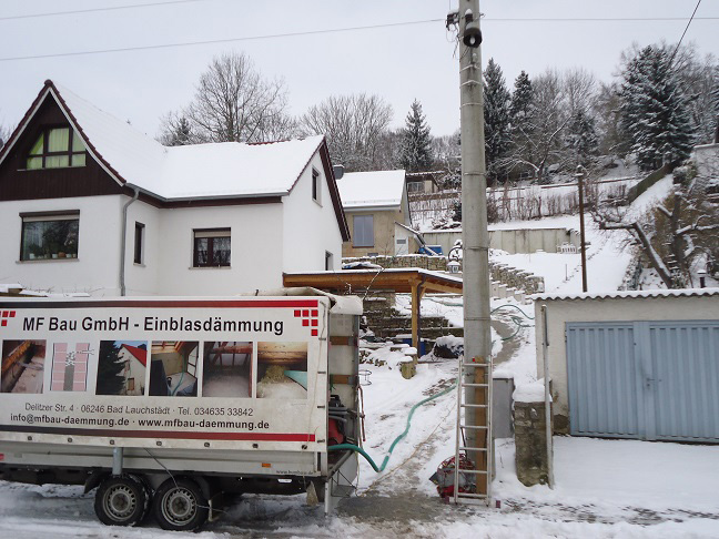 Dieses Einfamilienhaus wurde umgebaut und saniert. Dabei bemerkte der Eigentümer die Luftschicht in der Außenwand. Wir befüllten diese mit unserer Kerndämmung innerhalb weniger Stunden.