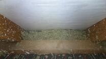 Hier wurde der Hohlraum zwischen bereits vorhandener Dämmung der Dachschrägen und der Unterspannbahn nachträglich mit Steinwolleflocken verfüllt und Fehlstellen beseitigt.