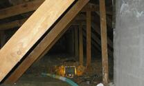 Diese letzte Geschossdecke dieses EFH war unsauber gedämmt. Durch das Aufbringen von Steinwolleflocken konnten wir Spalten und Lücken schliessen und so die Wärmedämmung spürbar verbessern.