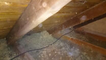 Hier sollte die vorhandene Dämmung der Dachschrägen verbessert werden. Der Auftraggeber entschied sich dann spontan auch für die Dämmung der letzten Geschoßdecke.