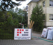 Die Hohlwand wurde innerhalb eines Tages vollständig verfüllt. Für die zu hohen Fassadenbereiche im Garten stellte uns der Bauherr eine Hebebühne zur Verfügung.