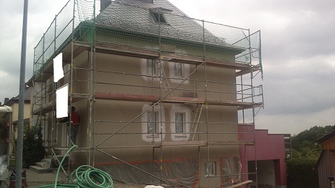 In dieser Wohnsiedlung in Grüna worde eine Doppelhaushälfte sanierte. Dabei stellte man das zweischalige Mauerwerk fest. Wir verfüllten es mit mineralischem Dämmstoff innerhalb eines Tages.