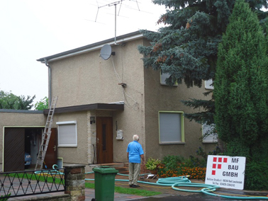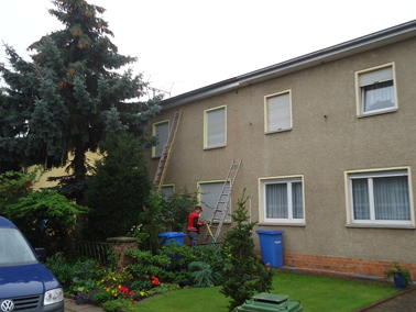 Diese Doppelhaushälfte in Dessau - Ziebigk haben wir mit Easy-Fill 034 gedämmt. Der Dämmstoff wurde durch die kaum sichtbaren Bohrung eingeblasen.