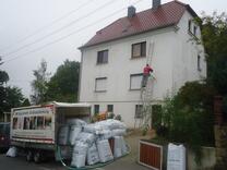Das Einfamilienhaus hatte ein zweischaliges Mauerwerk mit einer bis zu 10cm starken Luftschicht. Wir verfüllten diese mit Polystyrolkugeln mit einer Wärmeleitfähigkeit von 0,033 W/(mK).