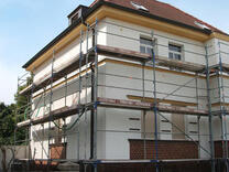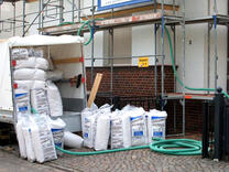 Dieses Mehrfamilienhaus hatte eine ca. 10 cm starke Luftschicht. Verfüllt wurde das zweischalige Mauerwerk mit Perli-Fill innerhalb eines Tages.