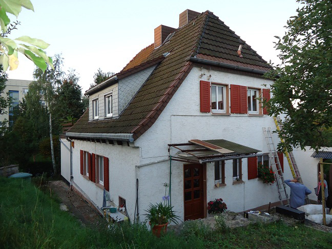 Dieses Einfamilienhaus wurde mit Easy-Fill 034 gedämmt. Der Hohlraum war im Dachgeschoß etwas schmaler als im Erdgeschoß.