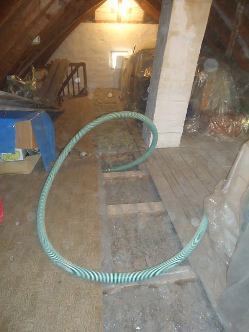 Diese beiden DHHn hatten eine ca. 7cm starke Luftftschicht. Wir verfüllten diese innerhalb eines Tages. Der rechte Eigentümer entschied sich zudem für die Dämmung der letzten Geschossdecke per Einblasverfahren.