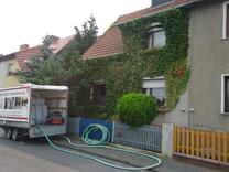 Die Außenwände dieser Doppelhaushälfte hatten eine ca. 7cm starke Luftschicht. Als Kerndämmung kam ein Dämmstoff mit einer Wärmeleitfähigkeit von 0,033 W/(mK) zum Einsatz.