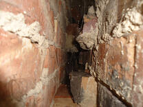 Dieses Gebäude hatte eine ca. 7 cm starke Luftschicht im Mauerwerk. Eine Kerndämmung mit einer Wärmeleitfähigkeit von 0,033 W/(mK) wurde eingeblasen. Der U-Wert verbesserte sich auf ca. 0,39 W/(m²K).