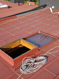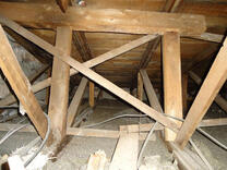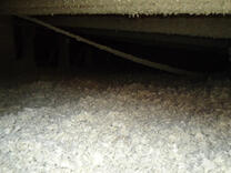 Auf die letzte Geschossdecke dieser Doppelhaushälfte wurden von uns Steinwolleflocken lückenlos aufgeblasen. Der Zugang erfolgte durch die vorhandene Dachlucke.