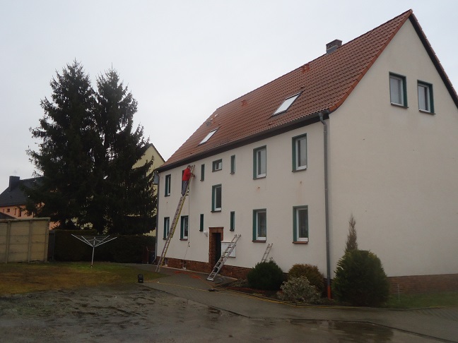 Die Luftschicht der Außenwände dieses Mehrfamilienhauses war ca. 7cm stark. Diese wurde Polystyrol-Granulat nachträglich verfüllt.