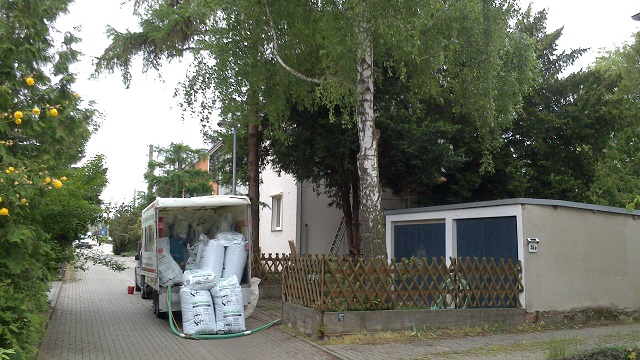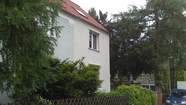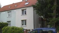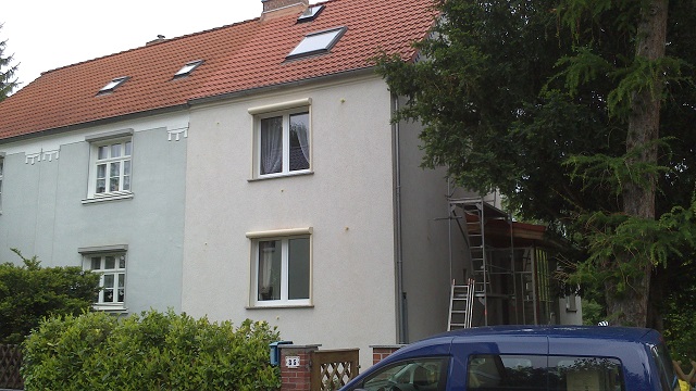 Diese Doppelhaushälfte hatte ein zweischaliges Mauerwerk. Der Hohlraum von 7-8cm wurde mit einem Dämmstoff der Wärmeleitfähigkeit von 0,033 W/(mK) verfüllt.
