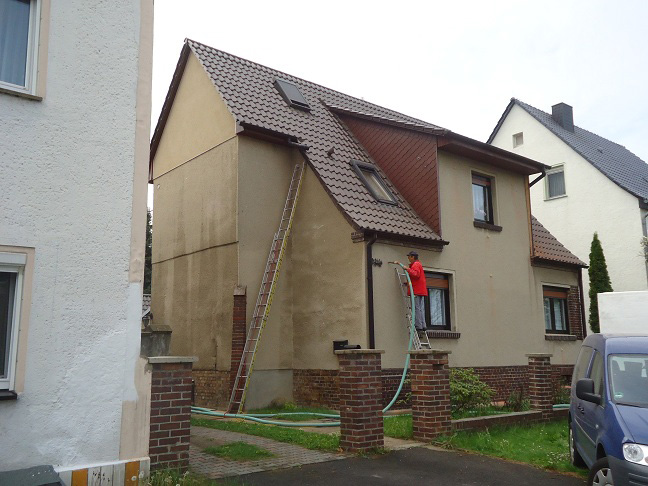 Dieses Einfamilienhaus hatte eine ca. 9 cm starke Luftschicht. Diese wurde vollständig mit unserem Dämmstoff verfüllt. Die Arbeiten waren an einem Tag abgeschlossen.