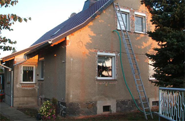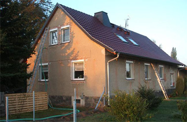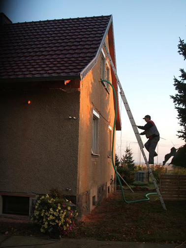 Hier wurde eine ca. 7 cm starke Hohlwanddämmung eingeblasen. Als Kerndämmung kam Perli-Fill F (WLG 040) zum Einsatz.