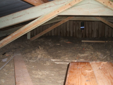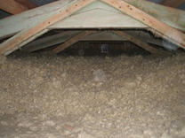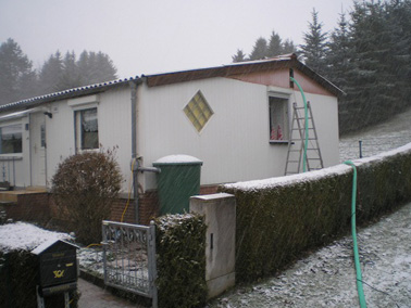 Hier wurde die schon vorhandene Dämmung der Decke deutlich verbessert. Der Schlauch konnte durch die Lüftungsöffnung am Giebel geführt werden.