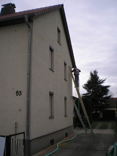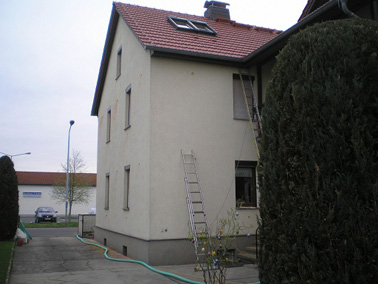 Die ca. 7 cm tiefe Luftschicht der Außenwände wurde nachträglich mit Easy-Fill 034 gedämmt. Die Arbeiten waren bereits am Mittag abgeschlossen.