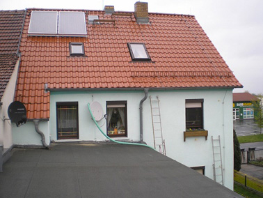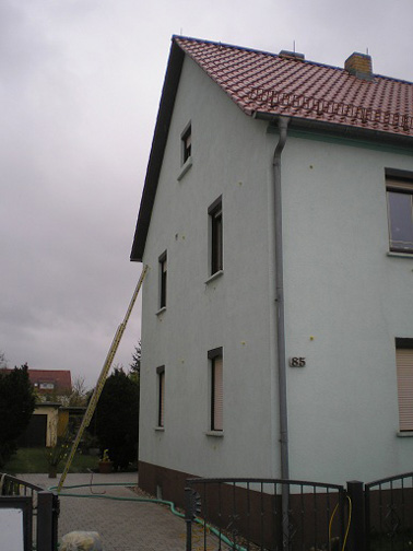 An dieser Doppelhaushälfte wurde die Luftschicht zwischen den zwei Mauerschalen nachträglich verfüllt. Zum Einsatz kam Easy-Fill 034.